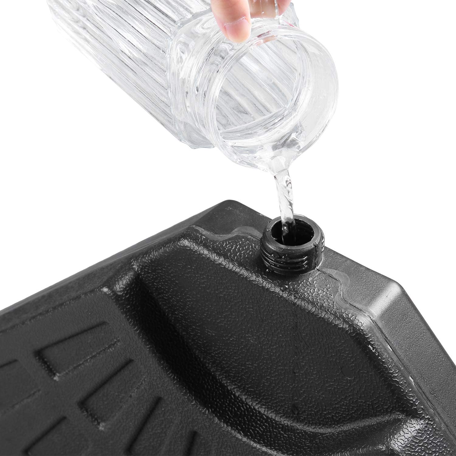 Weight capacity of approximately 145 pounds of sand or 112 pounds of water (total) to withstand heavy winds; easy-to-fill spouts